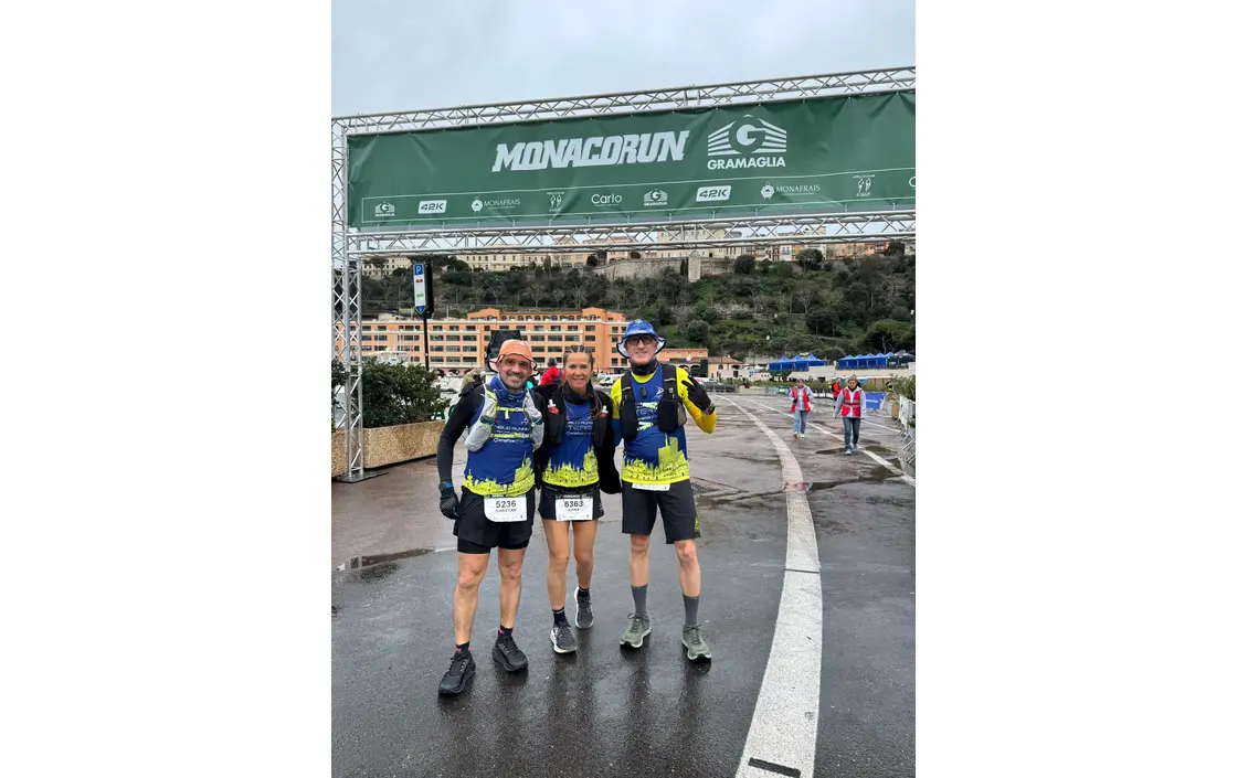 Sconfinamento glamour per Elena, Sebastiano e Christian al Trail du Mont Agel sopra Monte Carlo.